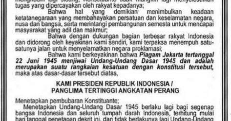 Isi Dekrit Presiden 5 Juli 1959 - New Portal Panjul