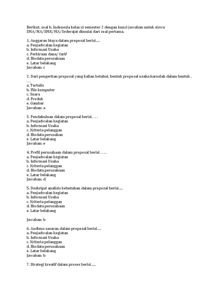 Soal latihan Bahasa Indonesia kelas 11 Semester 2 PG dan Essay …