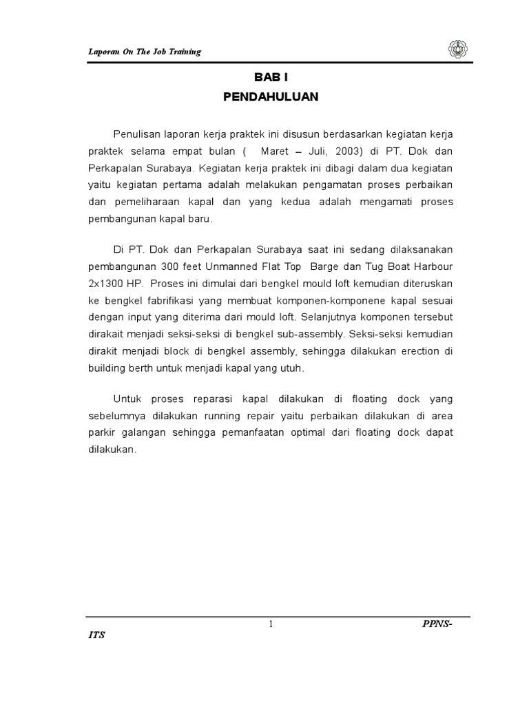 Bab I Pendahuluan: Laporan On The Job Training