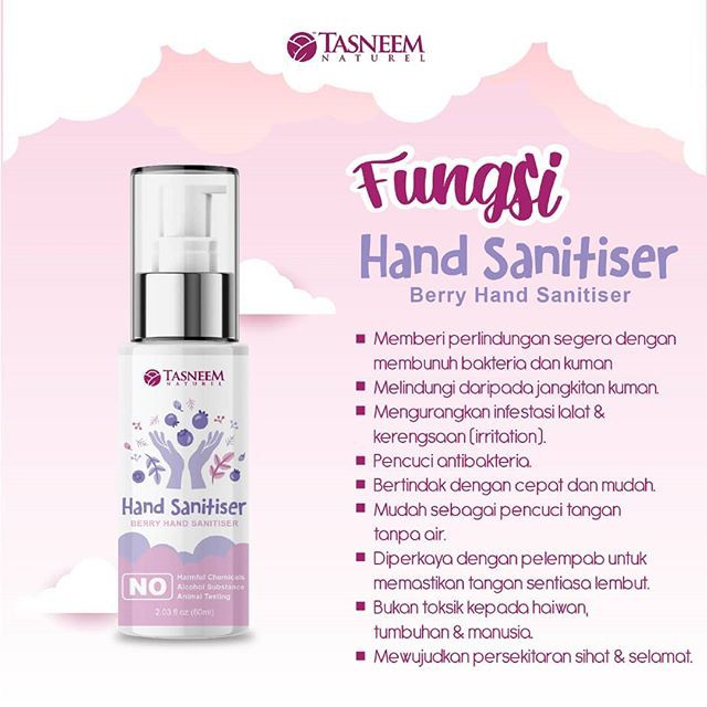 HAND SANITIZER 60ml By Tasneem Naturel - Geranium / Berry Flavor …