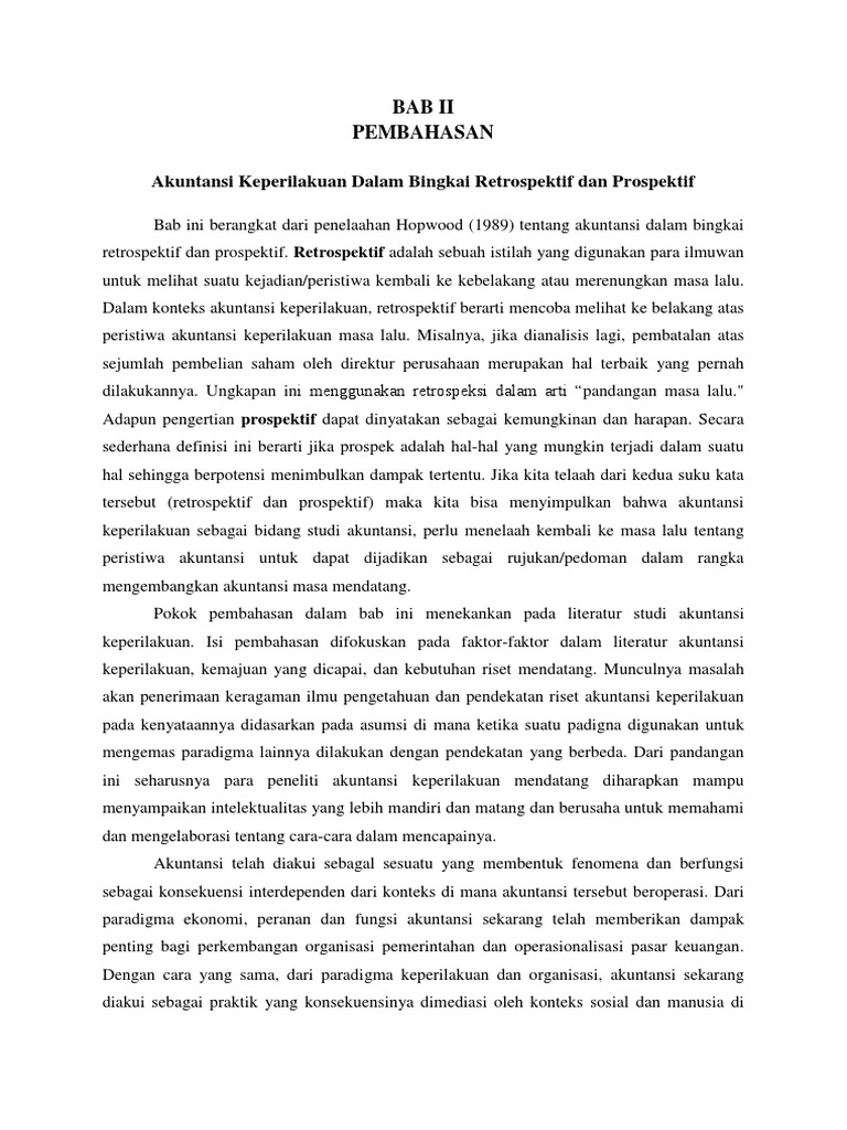 Ak. Keperilakuan dalam Bingkai Retrospektif dan Prospektif.docx - BAB 1 PENDAHULUAN 1.1 Latar Belakang Akuntansi telah diakui sebagai fenomena yang | Course Hero