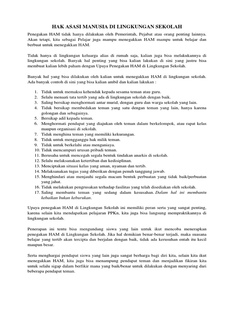 Hak Asasi Manusia Di Lingkungan Sekolah: kebaikan bukan …