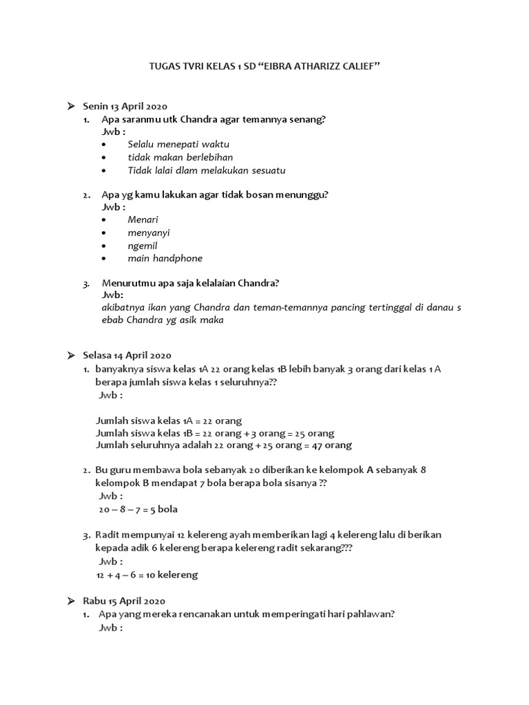 Soal Kelas 1 2 3 di TVRI Minggu kedua 20-24 April 2020 - Info …