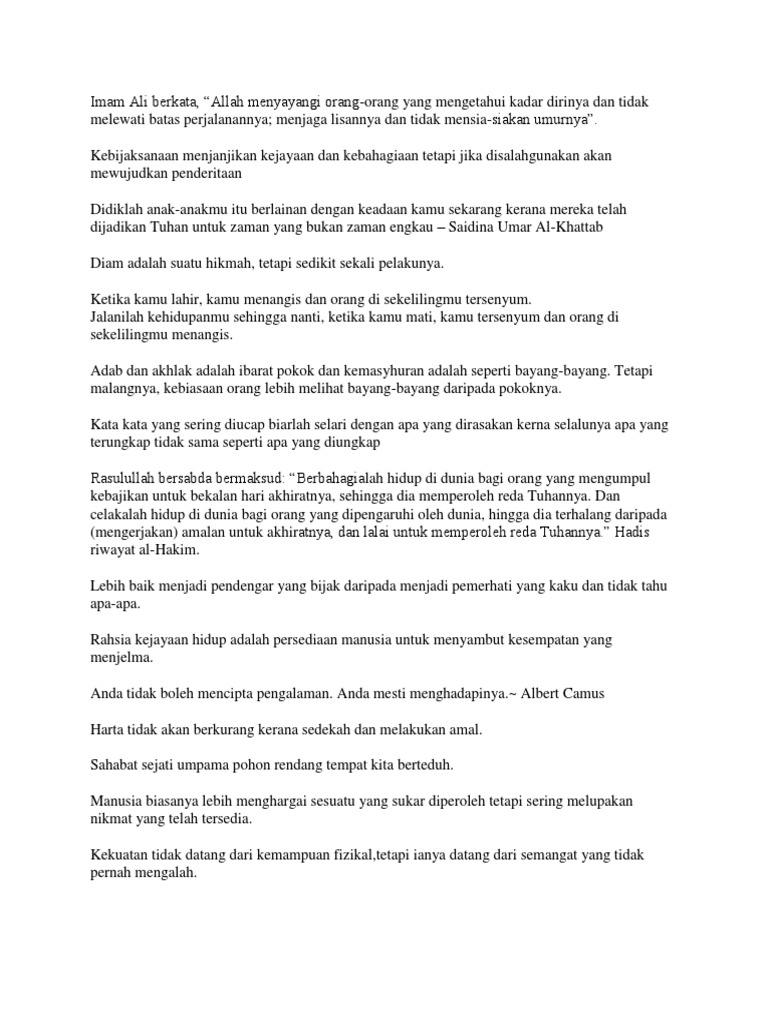 DOC) RENUNGKANLAH kata-kata Saidina Ali bin Abu Talib | Zanariah …
