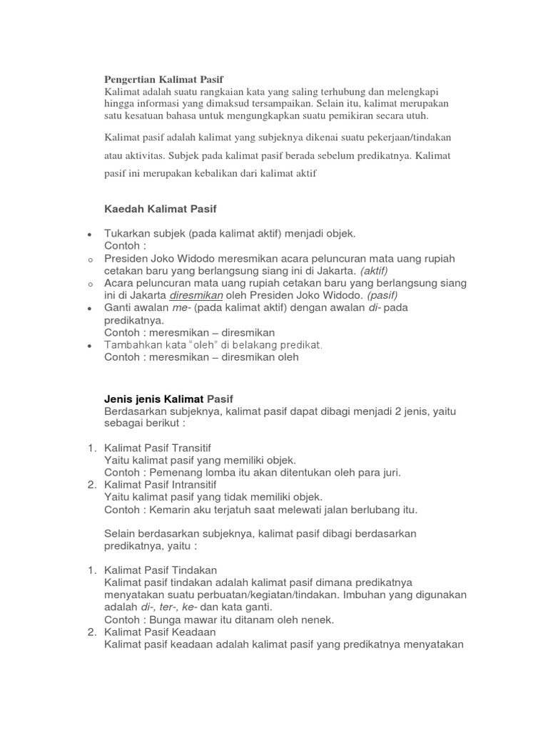 Kalimat Pasif - Pengertian, Ciri-Ciri, Jenis-Jenis Beserta Contoh …