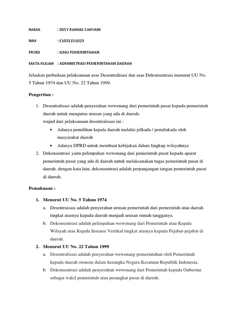 Jelaskan apakah asas desentralisasi dan asas dekonsentrasi …