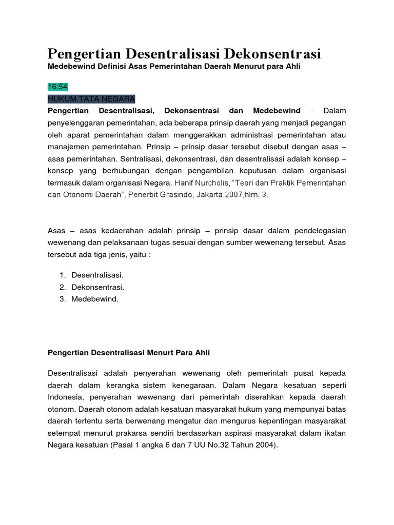 Pengertian Desentralisasi Dekonsentrasi Medebewind Definisi Asas …