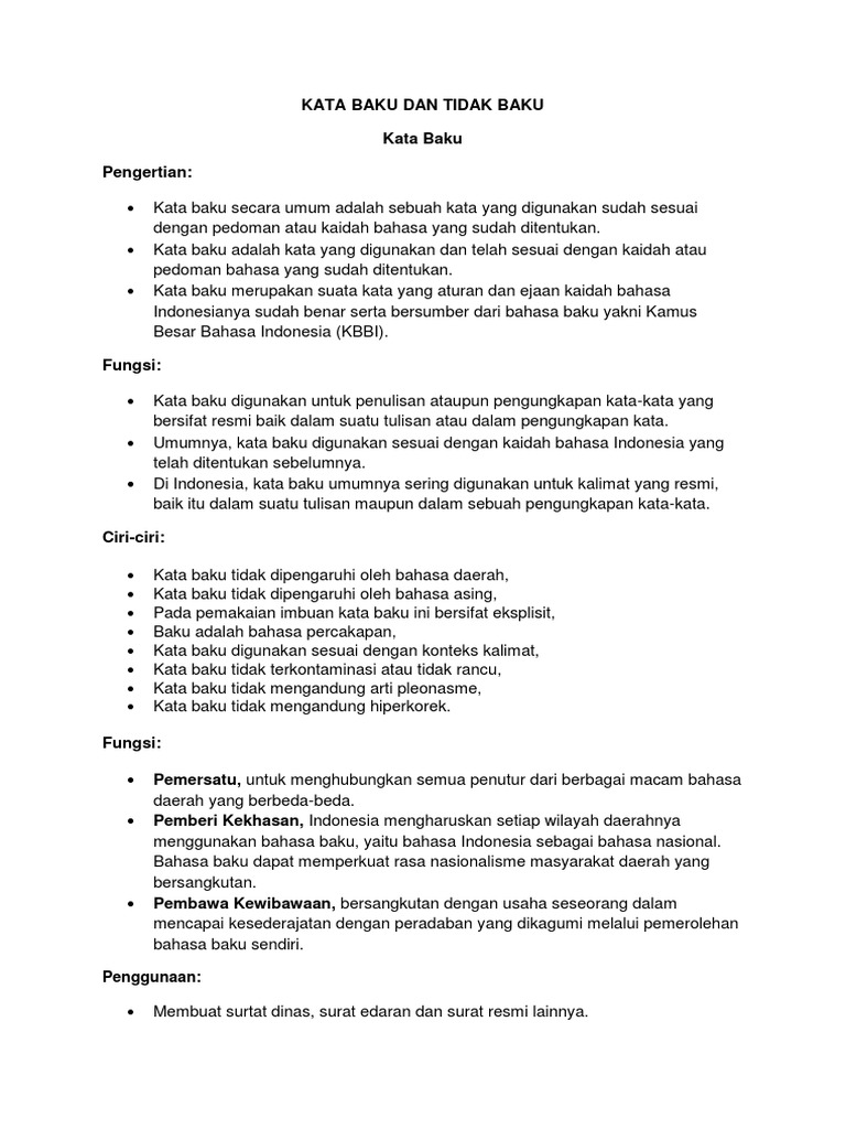 Pengertian Kata Baku Dan Tidak Baku Beserta Contohnya - Pengertian …