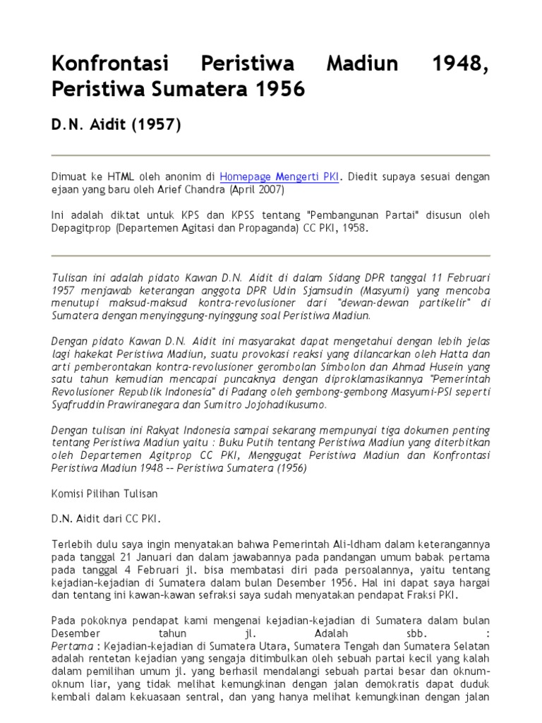 Konfrontasi Peristiwa Madiun 1948, Peristiwa Sumatera 1956 - Aidit …
