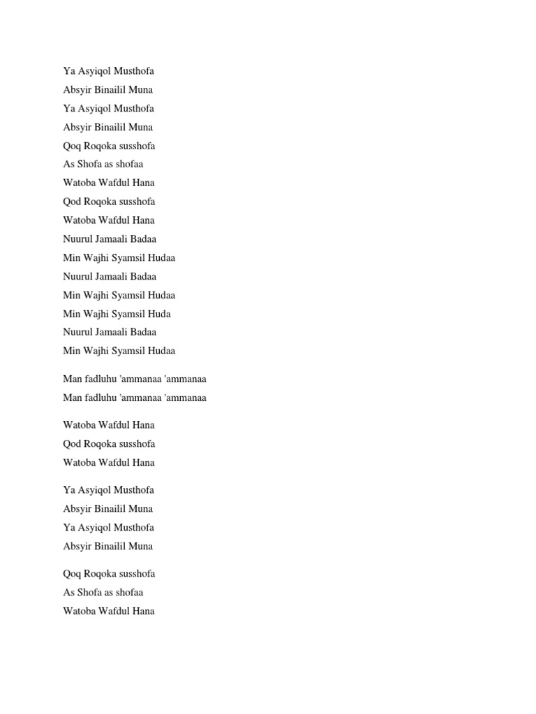 DOC) Lirik dan Arti Sholawat Ya Asyiqol Musthofa.docx | Rizal …