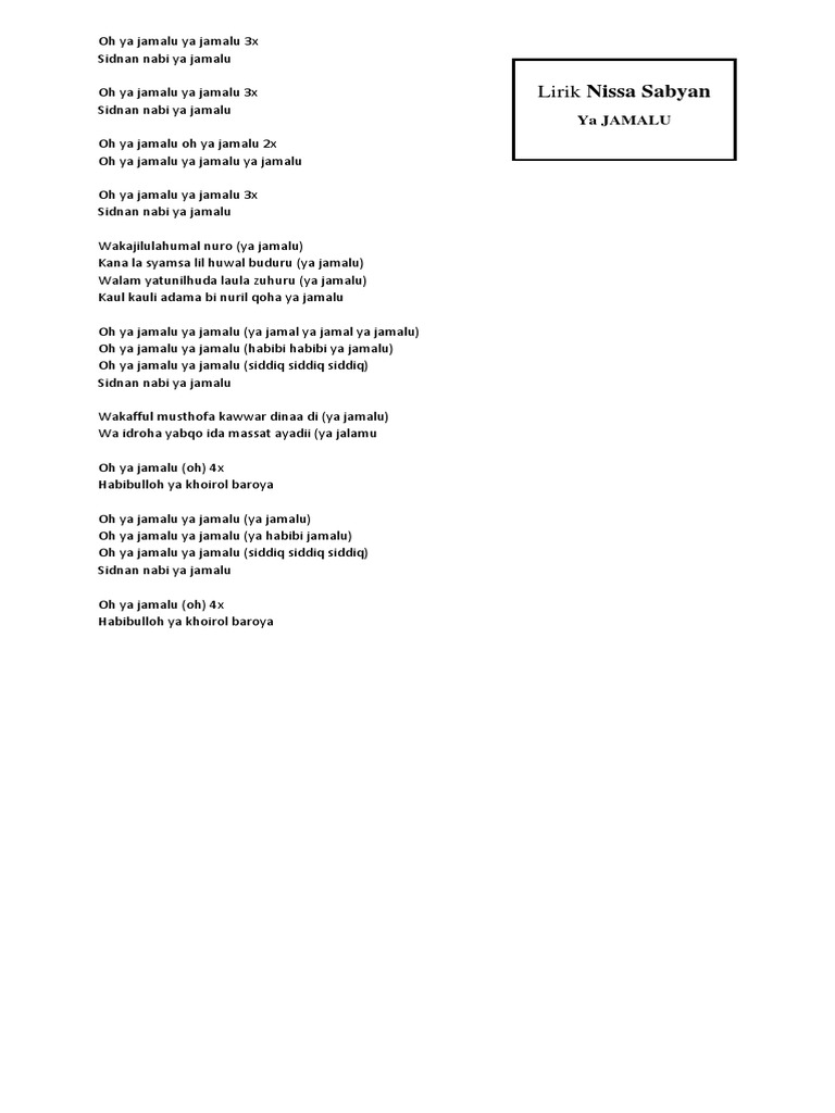 Teks Lagu Nissa Sabyan Ya Asyiqol - Berbagai Teks Penting