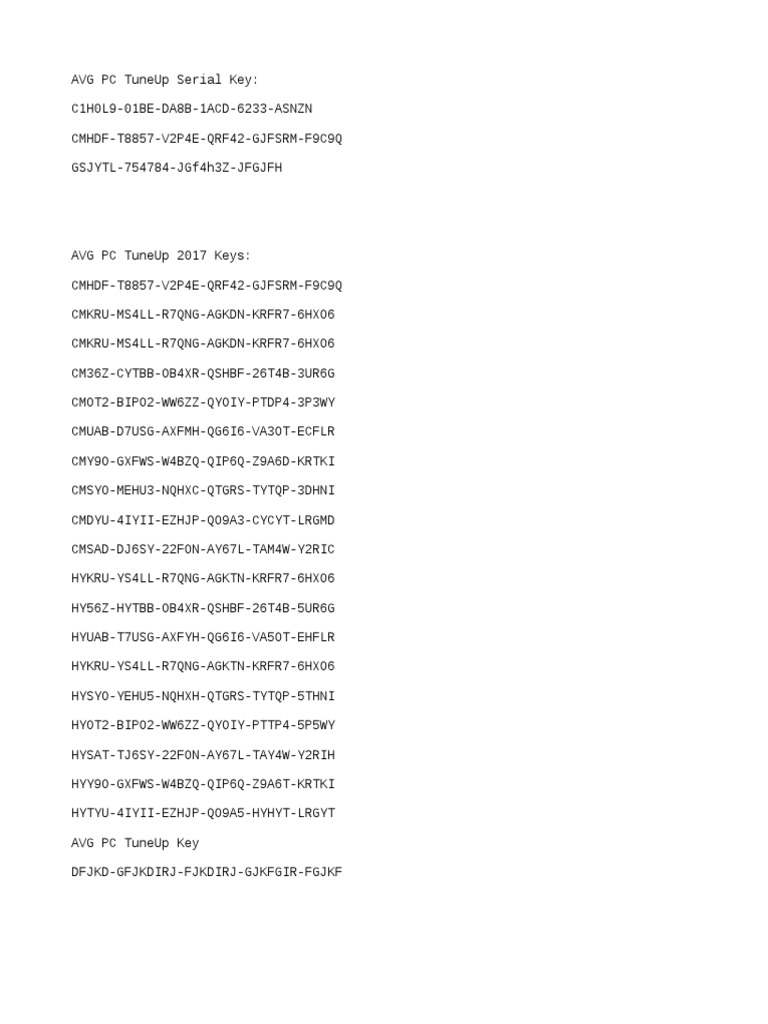 Avg Pc Tuneup 2017 Lifetime Serial Key