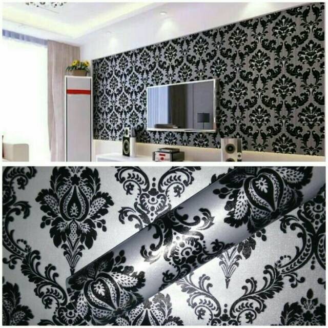 Jual Wallpaper dinding ruangan tamu kamar batik hitam silver …