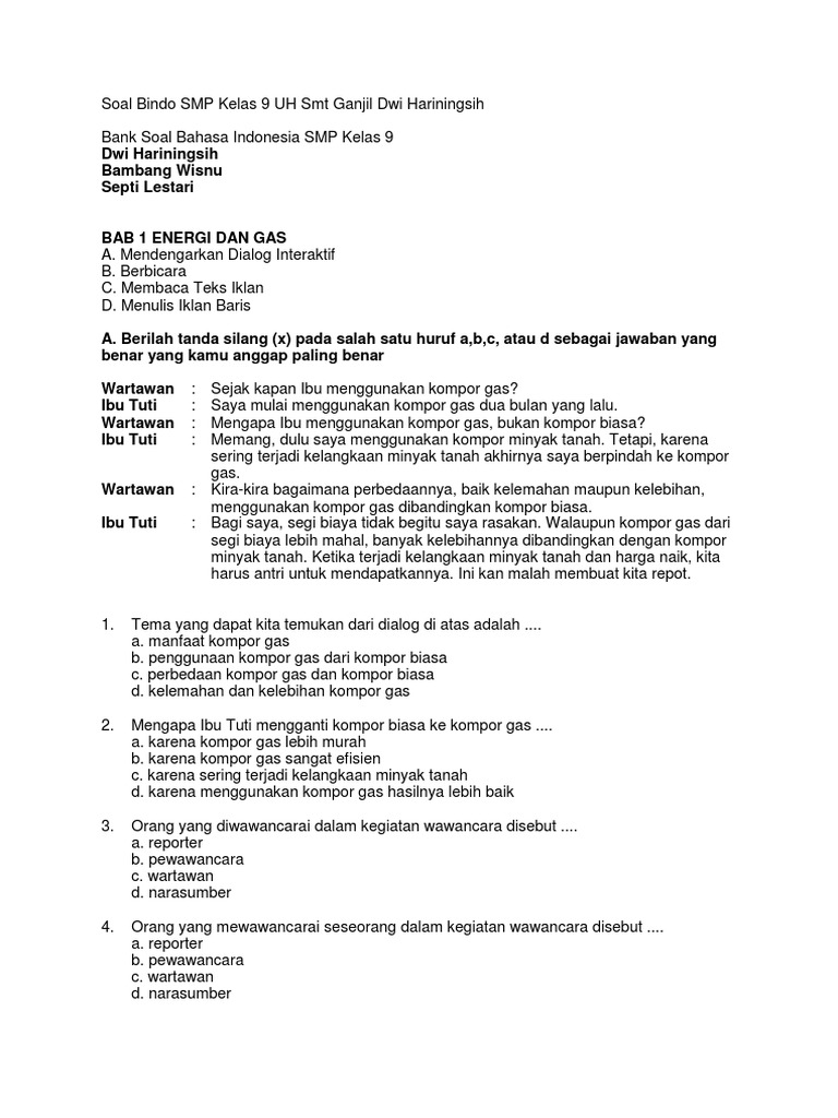 Kumpulan Soal Bahasa Indonesia SMP Kelas 9 Semester Ganjil …