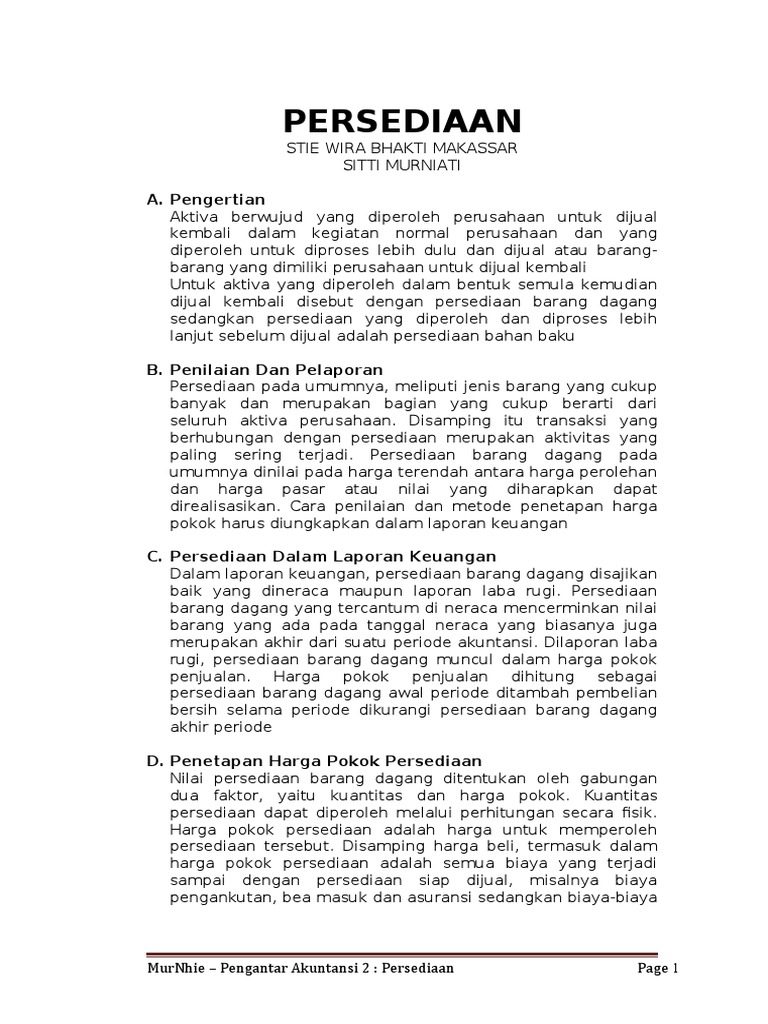 Definisi Persediaan: Adalah meliputi semua barang yang dimiliki …