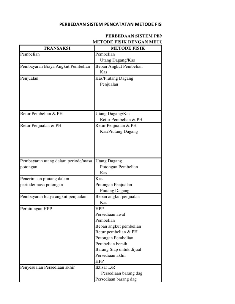 Perbedaan Sistem Pencatatan Metode Fisik Dengan Metode …