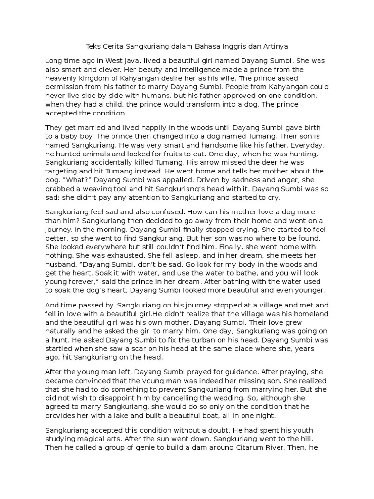 Teks Cerita Sangkuriang Dalam Bahasa Inggris Dan Artinya