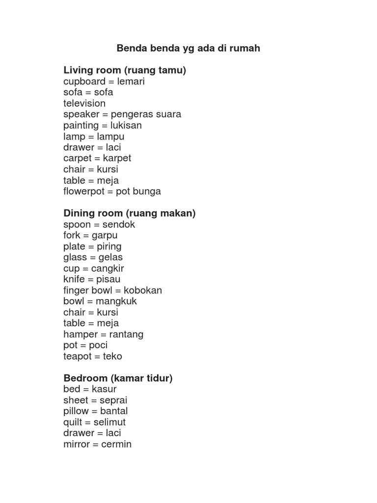 ✓ Kumpulan Kosakata Benda yang ada di rumah dalam Bahasa Inggris - Mediasiana.com - Media Pembelajaran Masakini