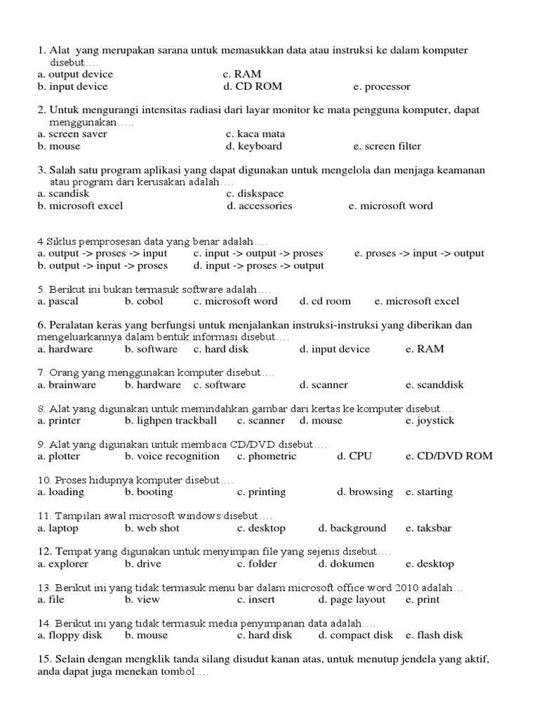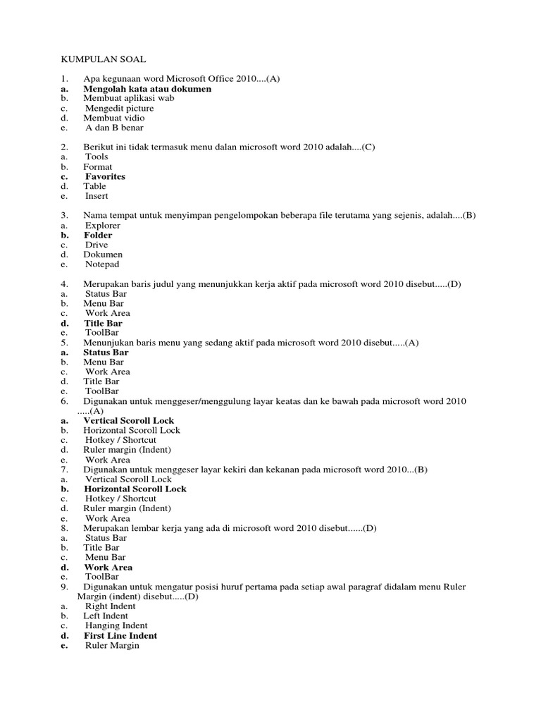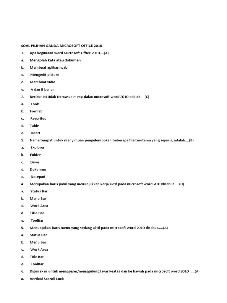 Latihan Soal Komputer.docx - SOAL PILIHAN GANDA MICROSOFT OFFICE …