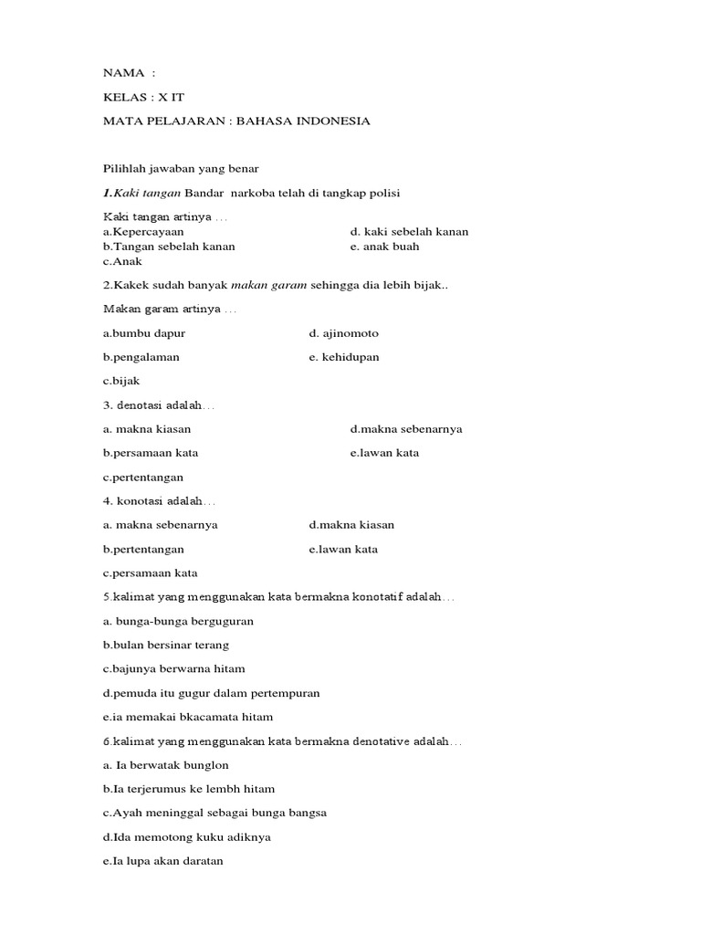 Contoh Kata Jalan Bermakna Denotasi | Contoh Soal Dan Materi Pelajaran 7