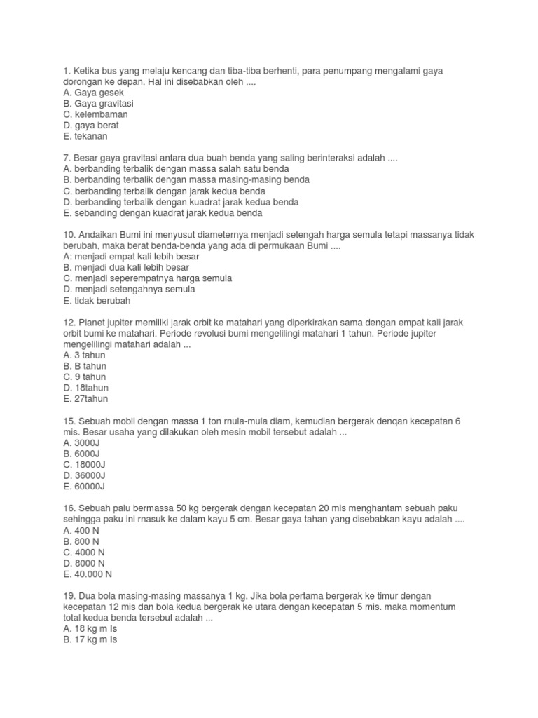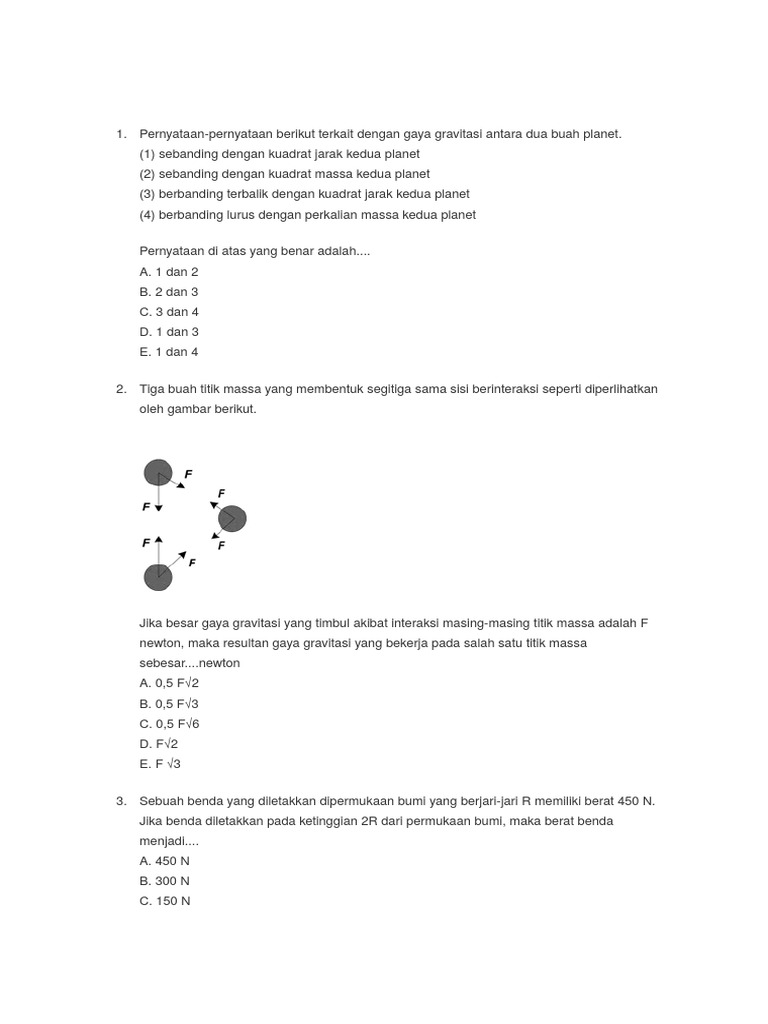 1. Berdasarkan hukum gravitasi Newton, hubungan antara dua