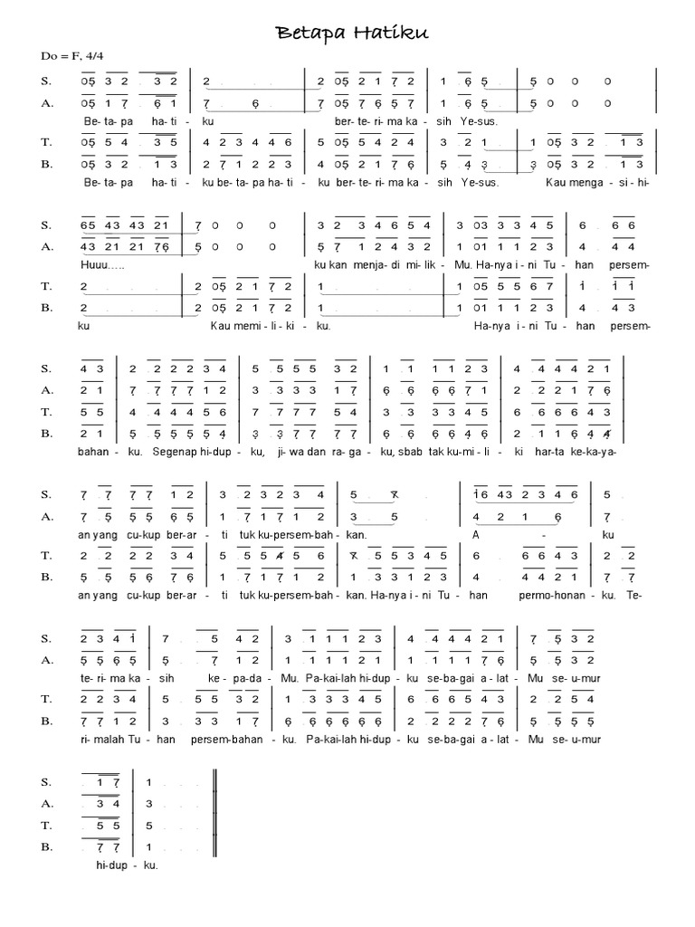Not Angka Lagu Rohani Betapa Hatiku