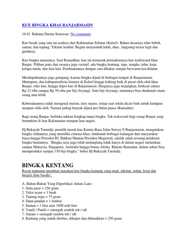 Resep Masakan Kue Wadai Bingka Kentang Khas Banjar Kalsel | SENI …
