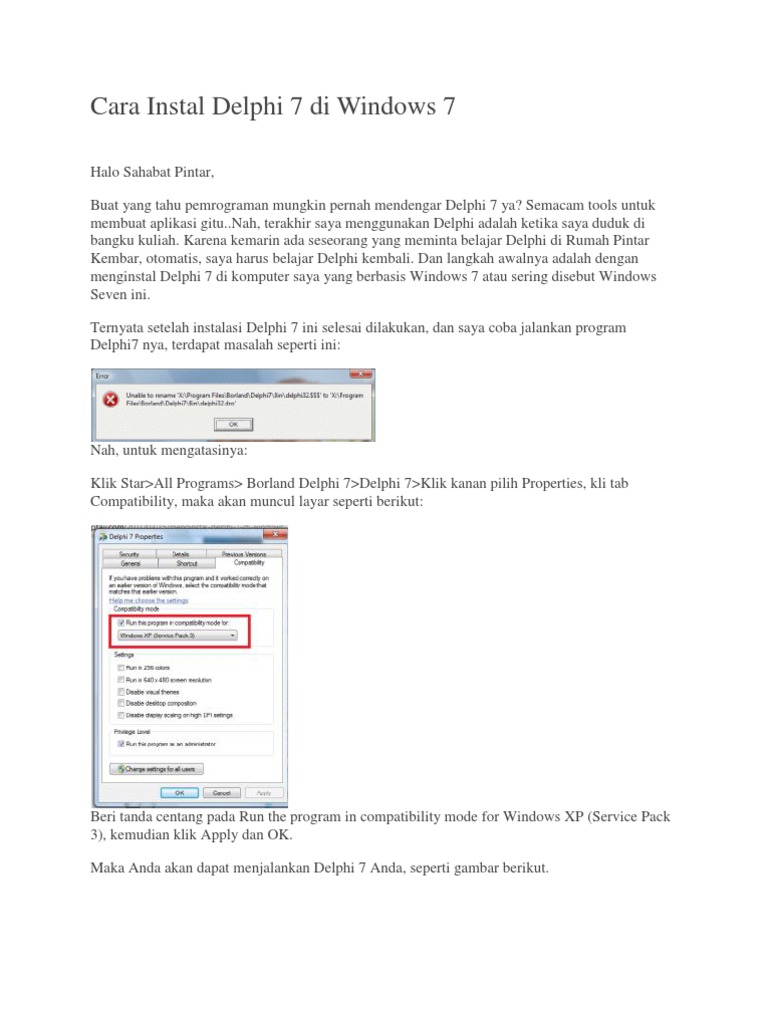 Cara Instal Delphi 7 Untuk Semua Windows 64-32.docx - Cara Instal Delphi 7 Untuk Semua Windows 64/32 Bit Tolong Di baca baik-baik ya biar instalanya | Course Hero