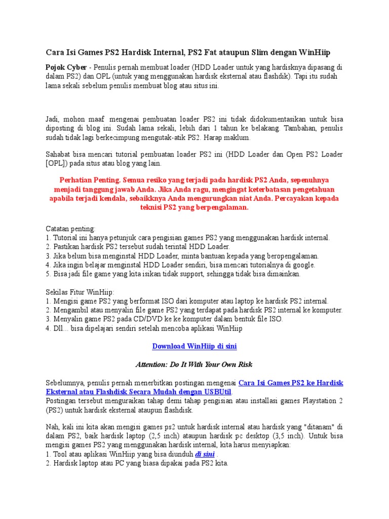 Cara Mengisi Game PS2 ke Hardisk Internal Dan Eksternal Beserta Dengan Gambar: Cara Isi Game PS2 Hardisk Internal Menggunakan WinHIIP