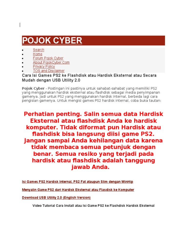 Pojok Cyber: Cara Isi Games PS2 ke Flashdisk atau Hardisk Eksternal atau Secara Mudah dengan USB Utility 2.0