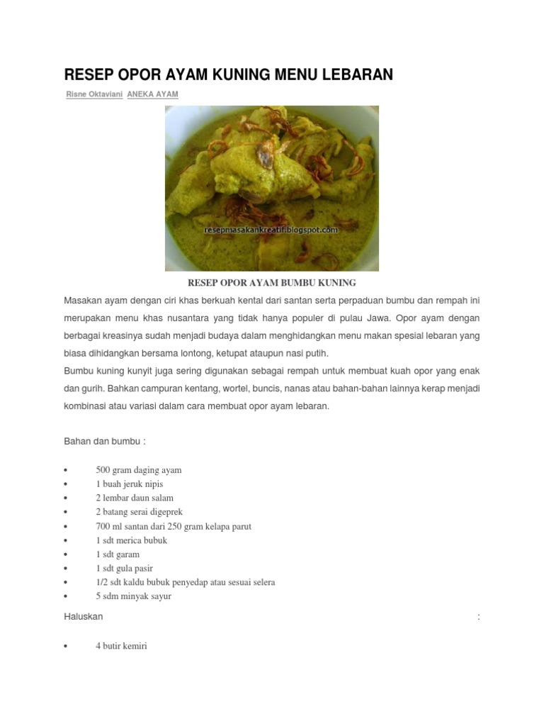 RESEP OPOR AYAM KUNING MENU LEBARAN - Aneka Resep Masakan …