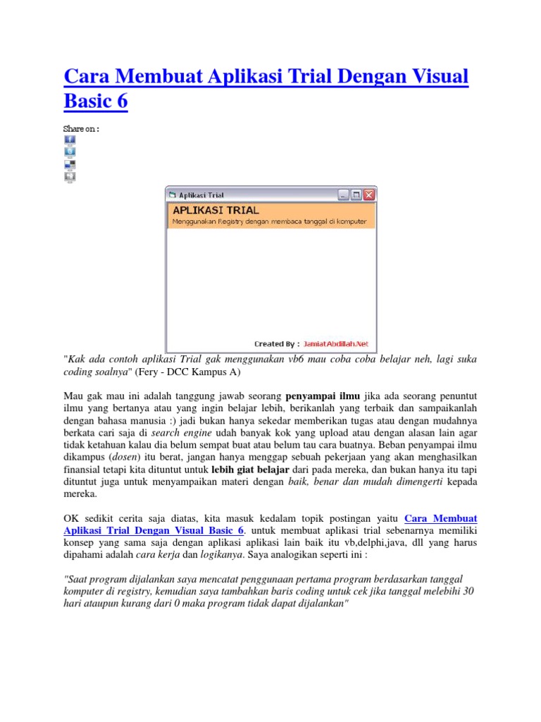 Cara Membuat Aplikasi Trial Dengan Visual Basic 6