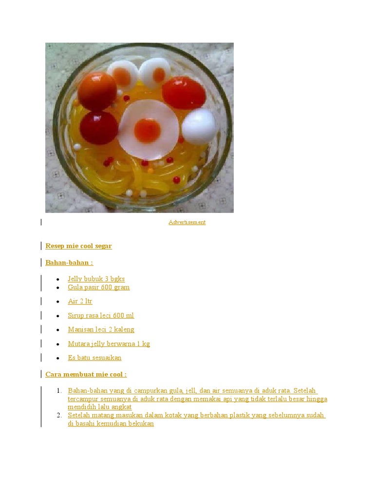 Resep mie cool segar Bahan-bahan:: Advertisement
