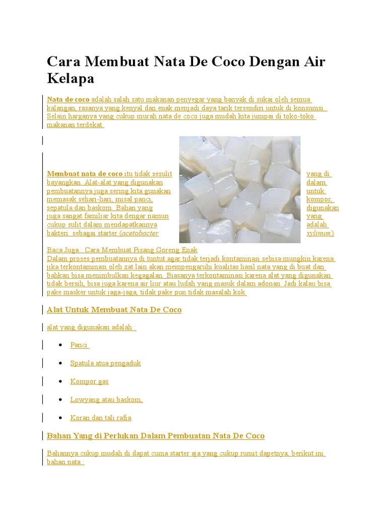 Cara Membuat Nata de Coco. Nata de coco adalah bahan makanan yang …