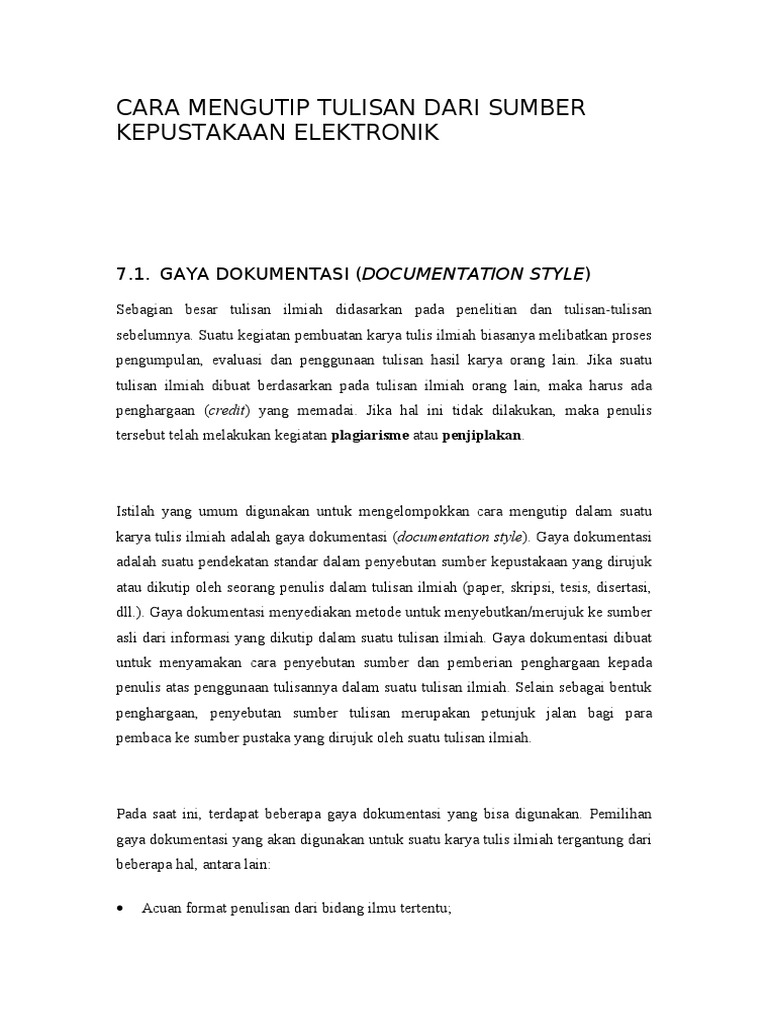 Cara Mengutip Tulisan Dari Sumber Kepustakaan Elektronik