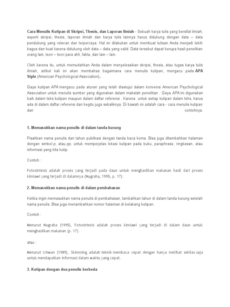 Cara Menulis Kutipan Di Skripsi