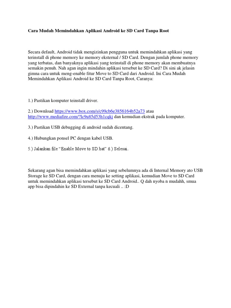 Cara Mindahin Aplikasi Ke Sd Card Tanpa Root