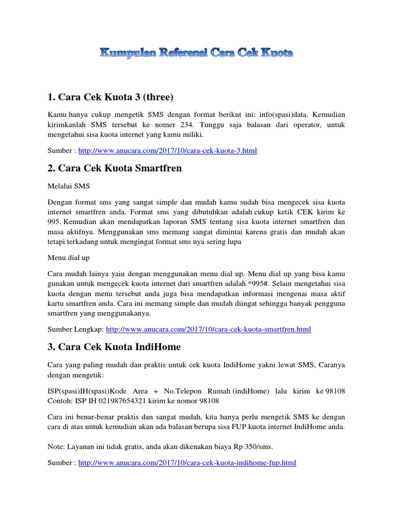 Kumpulan referensi cara cek kuota