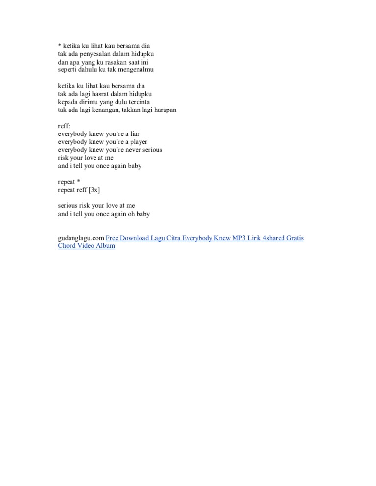 Lirik Dan Chord " Everybody Knew " by Citra Scholastika - Lirik …