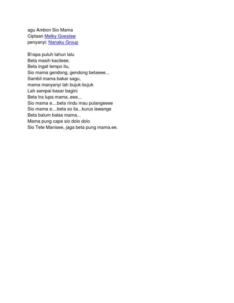 Lirik Lagu Ambon Sio Mama – Nanaku - Portal Maluku