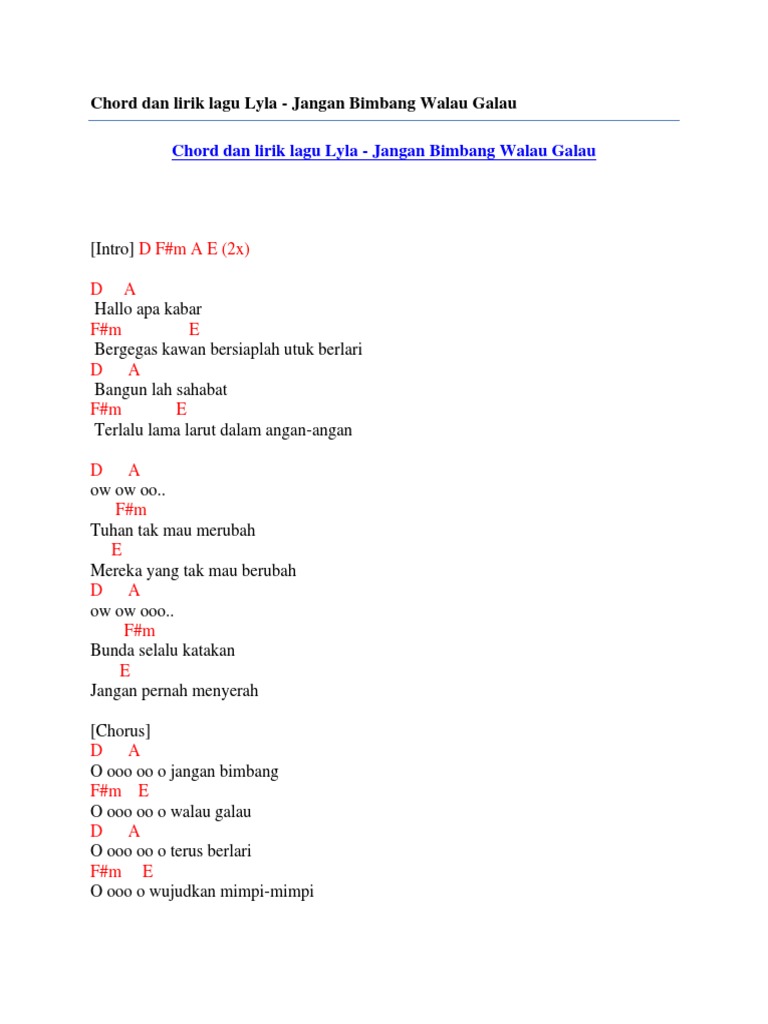 Chord dan lirik lagu lyla jangan bimbang walau galau by Chord Zila - issuu
