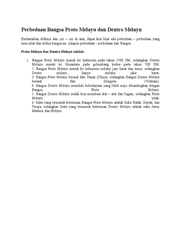 Perbedaan Proto Melayu Dan Deutro Melayu