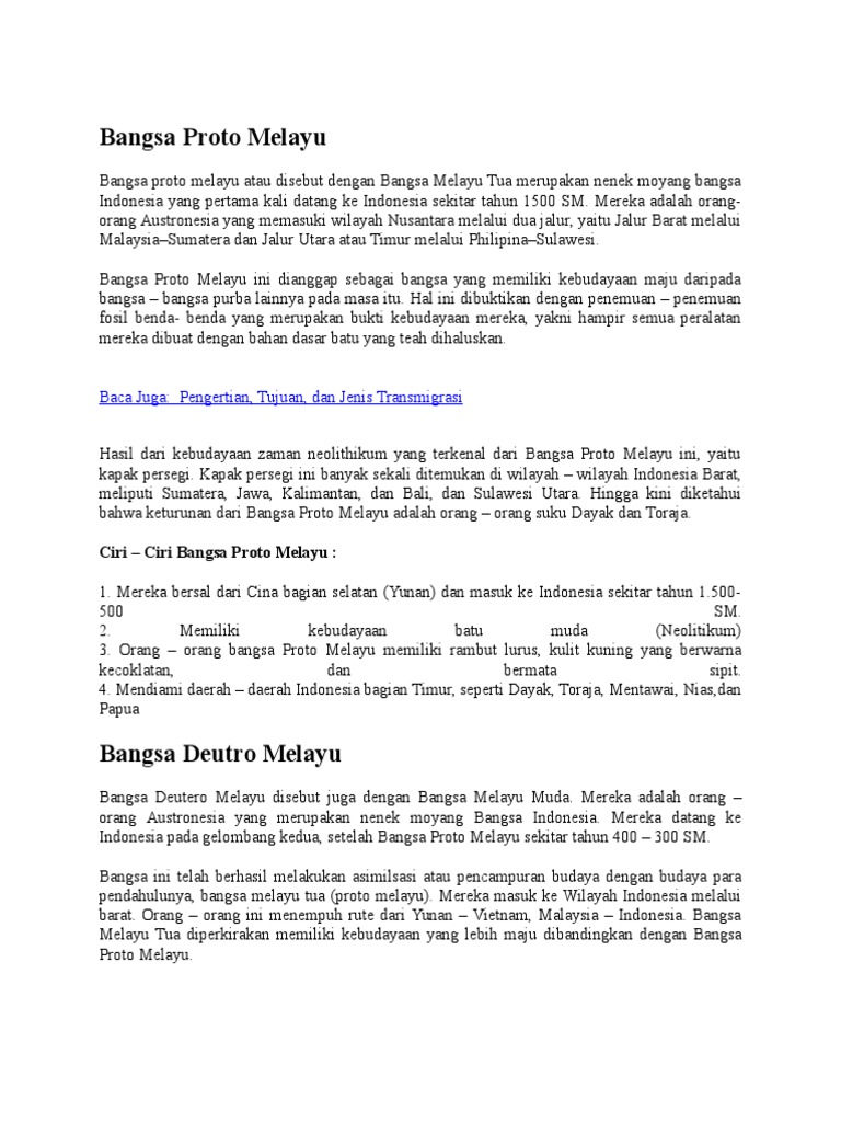 DOC) KEDATANGAN PROTO MELAYU DAN DEUTRO MELAYU DI INDONESIA | Ginanjar Wibowo - Academia.edu
