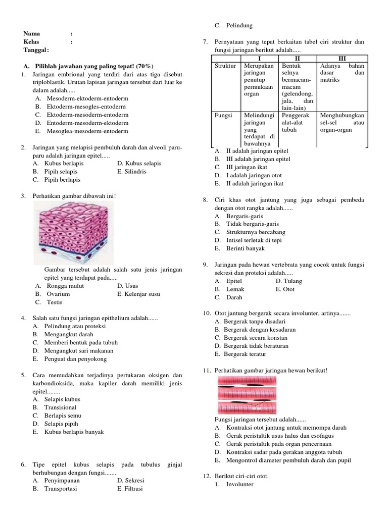 Ulangan Harian-jaringan Hewan Kelas Xi