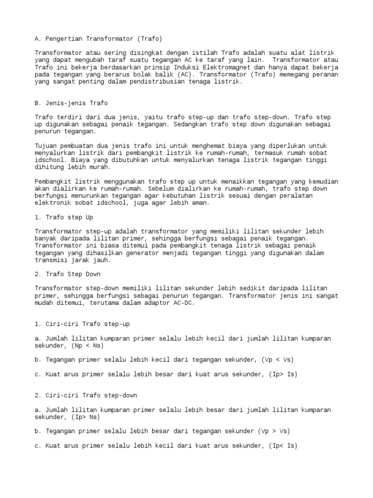 Jelaskan Perbedaan Antara Trafo Step Up Dengan Trafo Step Down …