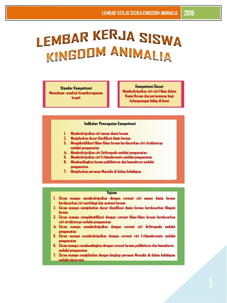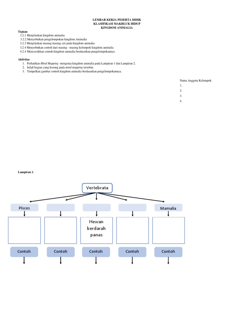 Lembar Kerja Peserta Didik Klasifikasi Makhluk Hidup Kingdom Animalia Tujuan