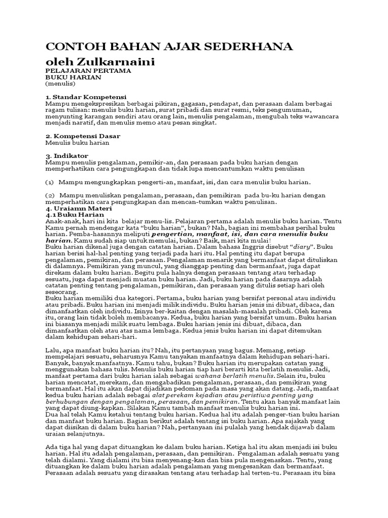 Contoh Buku Harian Pengalaman Pribadi - Eontoh
