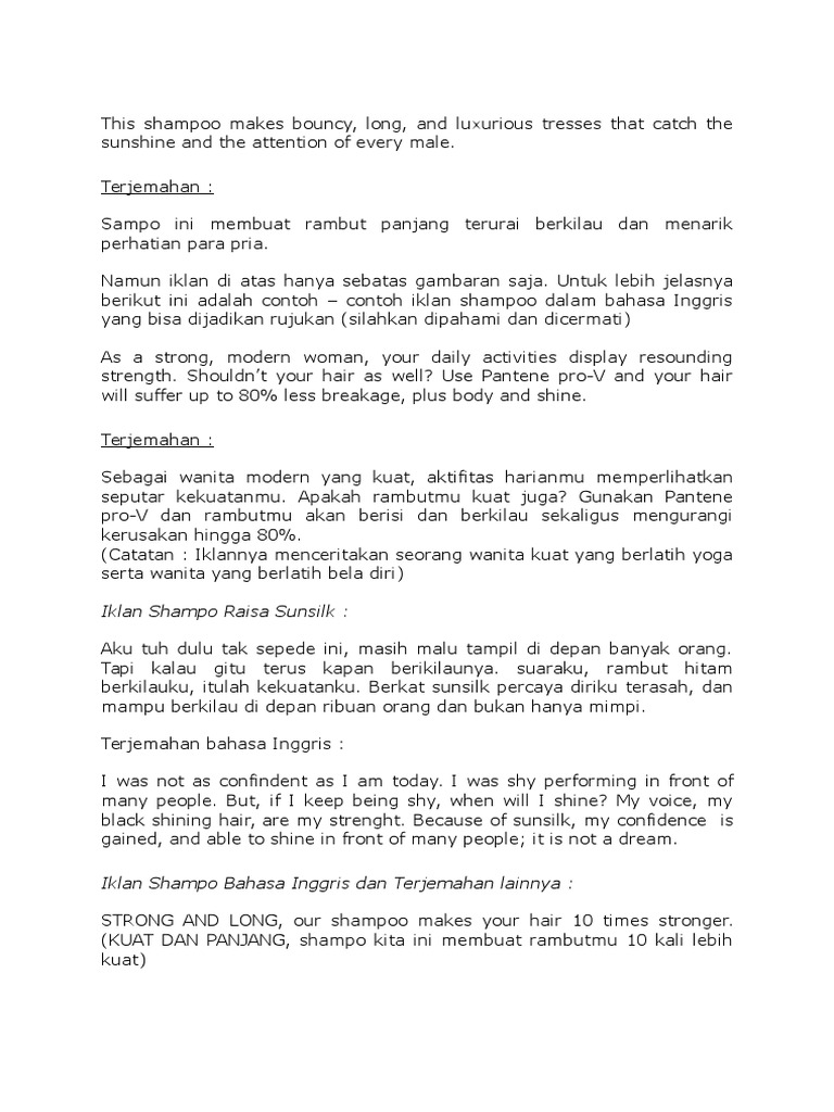 2 Contoh Iklan Shampoo Dalam Bahasa Inggris Lengkap Dengan …