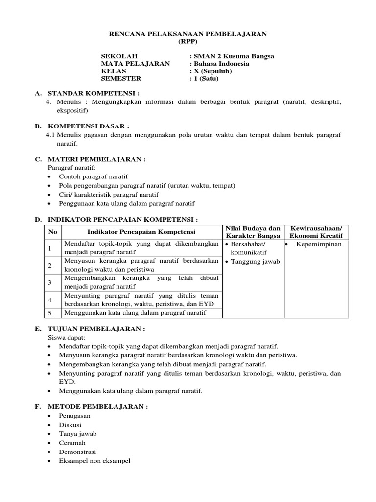 Rpp Bahasa Indonesia Sma Kelas Xi Semester 1 - intensivesip