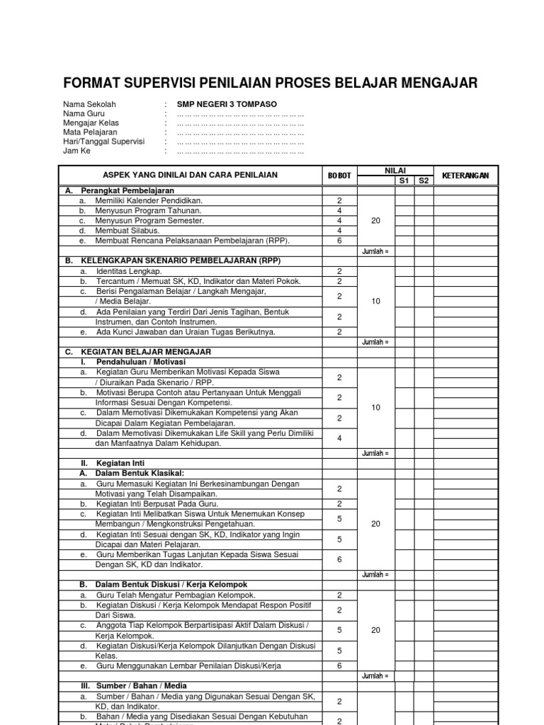 DOC) Laporan Supervisi (Contoh).doc | Sumarso M.Pd. - Academia.edu